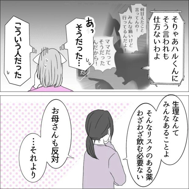 みわ柴ちゃんさんの母は同性のはずなのに、生理やPMSに対する考え方が全く違うようです。同じ女性として、ここは絶対に共感してほしいところでしたね…。