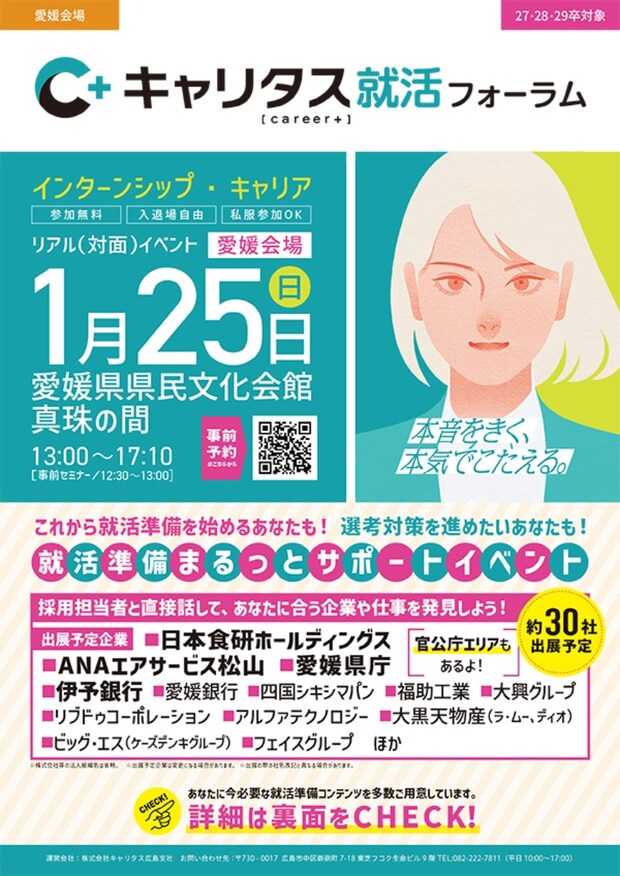 2026年1月25日(日)、「キャリタス就活フォーラム インターンシップ・キャリア」が、愛媛県県民文化会館 真珠の間にて開催されます。