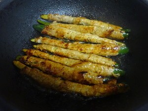 縦長きゅうりに豚肉をくるくる