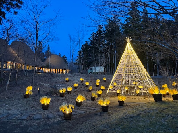 大自然の中、幻想的なライトアップも。ちょうど他の方がいなかったので、贅沢にもライトアップをゆっくりと独り占めできました。
