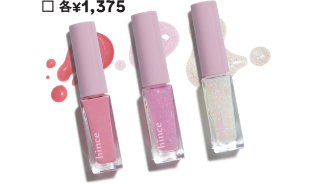 H ピンク系だとhinceのネイルにもキュンときた♥ 甘々に見えるS001は肌になじむし、他の2色はホログラム入りのシアー系で手元がパッと明るくなる。もうね、プチプラの進化がスゴ過ぎて……。