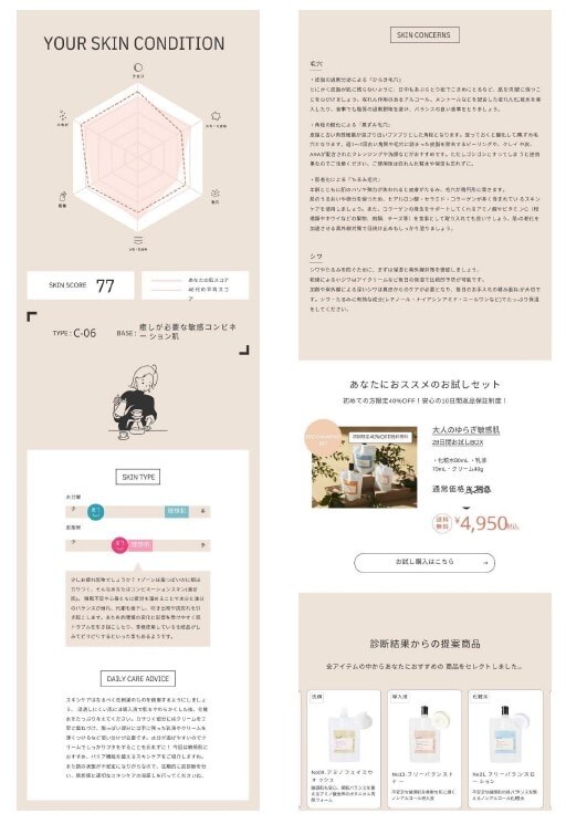 60,000通りの処方、87アイテム、8つの質問から