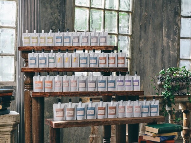 ビジュアルは肌や心が不安定なときにも落ち着くくすみカラーのトーン。調香師による天然精油100%(※No.53以外)の香り。視覚と嗅覚からホルモンバランスを整えます。配送BOXはカカオ豆を再利用したエコロジーペーパーでできており、なんともエコ。