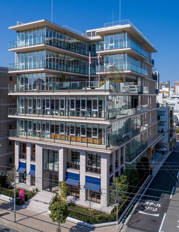 こちらが現存する日本最古の研究所! 2016年に新社屋が完成し、とっても清潔で明るくてぴっかぴか。社員の方々がテラスでランチをしているのが印象的でした。