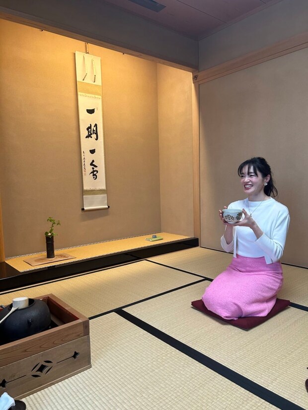 なんと社内に茶室や社員が活動する茶道部もあり、海外から来社される取引先の方々にも喜ばれているようです。私は恐れ多くも役員の方からお点前をちょうだいしました。さらにさりげなく目の前におかれていたのは徳川家の葵のご紋がはいった棗! ちゃっかり手に持ち拝見しました。震えました。本社のいたるところには絵画が飾られ、ほんものに日々触れることで感性が磨かれ、豊かなコスメが生まれるのだなあと実感した次第です。
