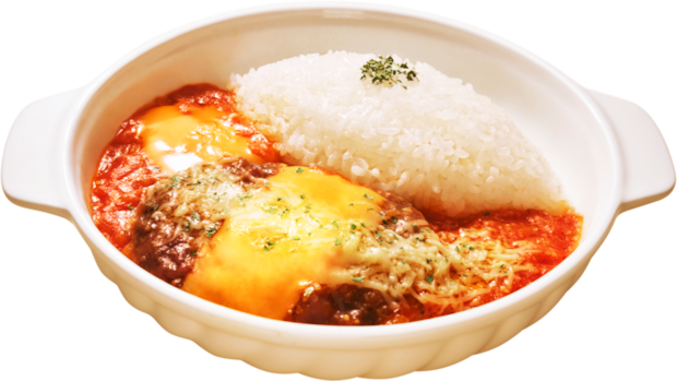 バターが香るケチャップライスにとろとろ食感のたまごをのせ、濃厚なデミグラスソースをかけたオムライス。たまごは牛乳や生クリームを入れ、口当たり滑らかに仕立てたとしている。
