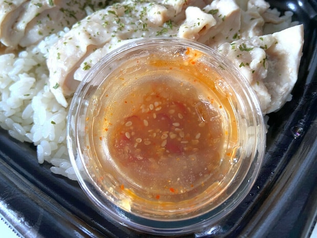 フタを開けると、ご飯の上にゆで鶏がたっぷり敷き詰められていて迫力満点!