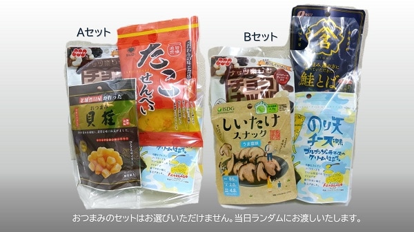 おつまみセットはAセットかBセットのいずれかひとつで、選ぶことはできない。