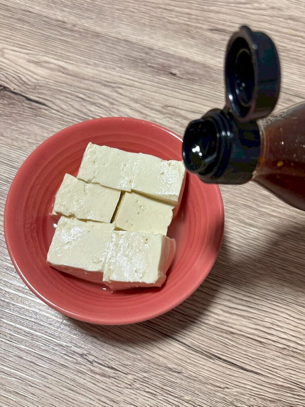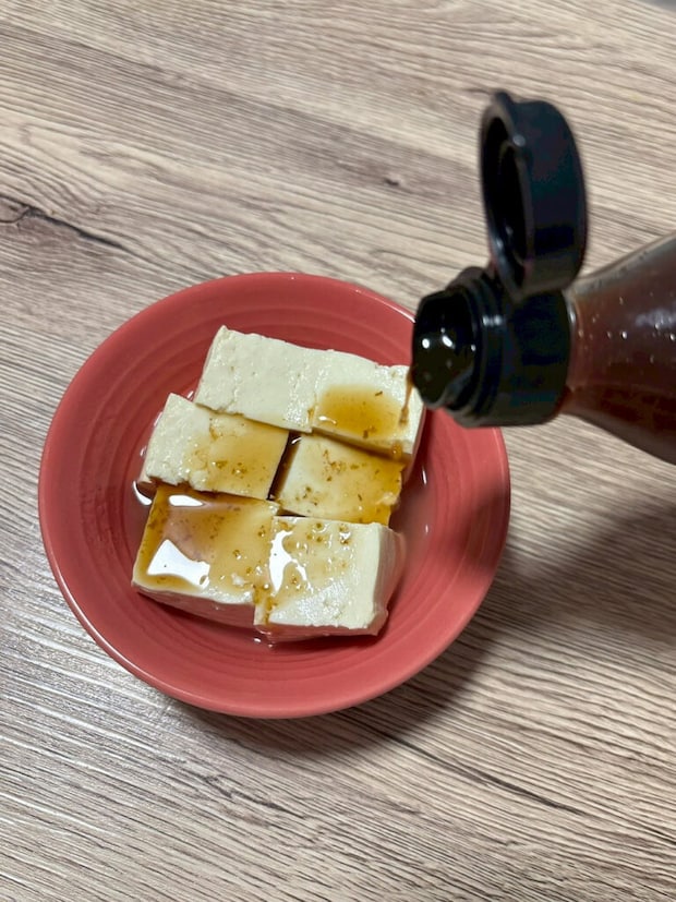(ズボラなのでレンチンしたお豆腐にドバドバかけてます笑)