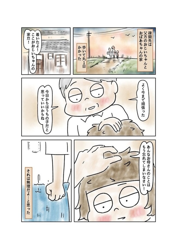 今回は、忍者ママさんの母「えっちゃん」の幼少期について。戦時中、父方の祖父母の家に疎開することになったえっちゃん。母と離れ離れの生活に寂しさが募り、やがてある行動に出る…。