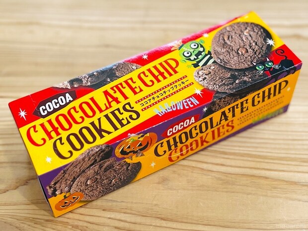 ココア生地にチョコチップを練り込んで、サクサクの食感に焼き上げたクッキーです。パッケージにはフランケンシュタインや黒ネコ、カボチャなどがデザインされていて、ハロウィンムード満点♪