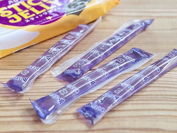 クッキーやスナック菓子のほかに、なんとゼリーまで入っていて感激。片手で手軽に食べられるスティックタイプです。