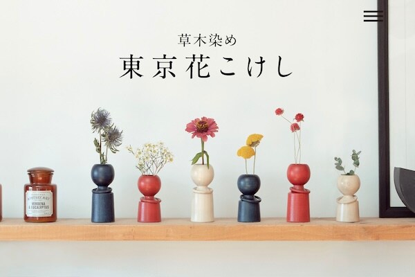 「草木染め 東京花こけし」は、一つひとつ職人の手仕事で作られた、暮らしを優しく彩る一輪挿しのこけしだ。