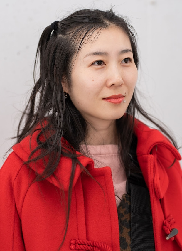 ハーフツインでまとめた髪型とリップカラーもコーデの一部! 顔周りまで気を配ることが、サマ見えの秘訣。