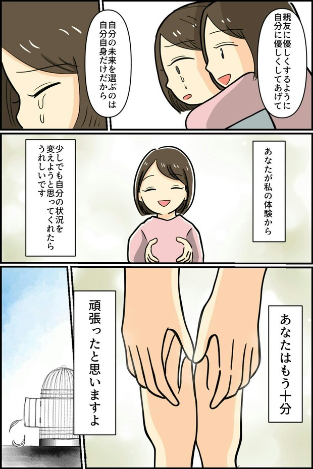モラハラ被害者は、自分が悪い、自分が変われば、と自分を責めてしまいがちです。しかし、皆さんに非はありません。精いっぱいパートナーと向き合おうと頑張り続けました。