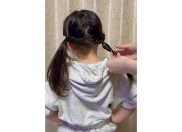 ゴムとゴムの間の毛束をほぐします。
