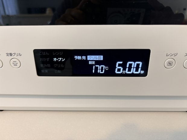 次は、オーブンを使用して調理してみます!キチンナゲット5個を170°のオーブンに入れ、6分間加熱しました。