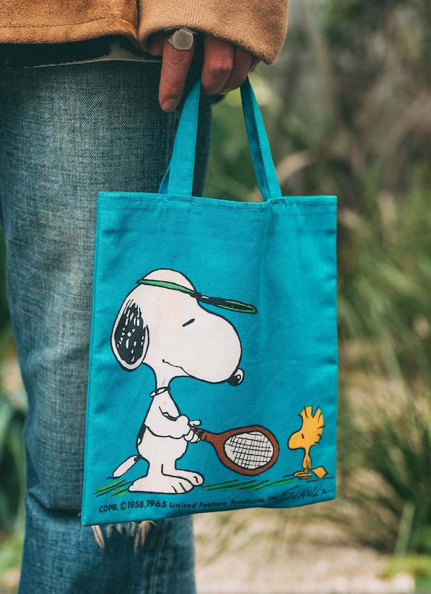スヌーピーのミニバッグでレトロなエッセンスをひとさじ。鮮やかなブルーと遊び心が家族コーデのポイントに。