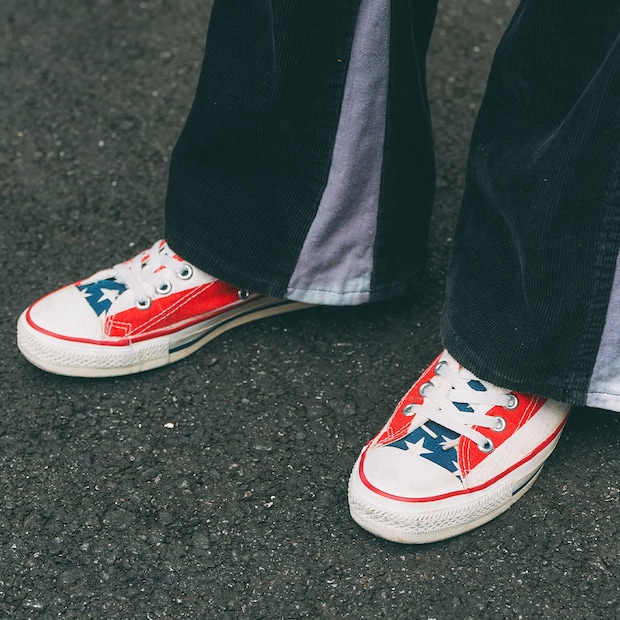 足元のディテールに注目!アメリカンポップな『コンバース』で、とことんムードを統一。