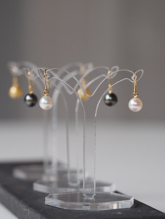 シズク型の真珠のイヤリングなどが並ぶ。