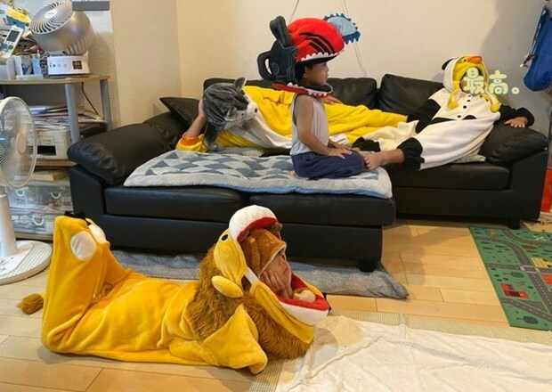 4兄弟の着ぐるみ姿から楽しそうな雰囲気が伝わってきます。カメラを構えていたパパもニコニコだったはず。ひと目見て思わず「問題は何も無さそう!」と笑ってしまいました。