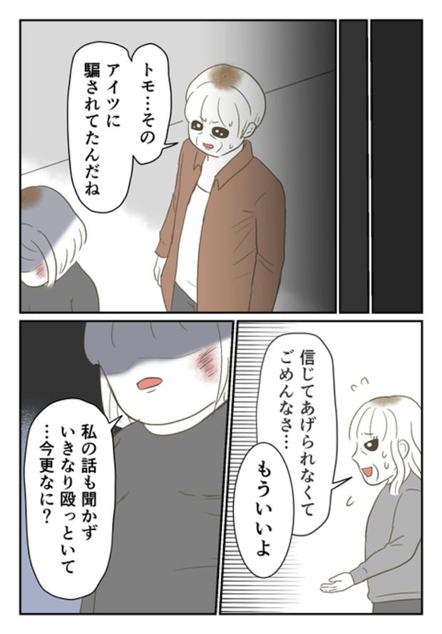 モトさんとその両親を見送った後、尾持さんの両親は娘を信じずに、一方的に叩いたことをあやまります。ですが、尾持さんは許せませんでした…。弁護士探しなども「全部、私一人でやる」と、両親の申し出をことわります。
