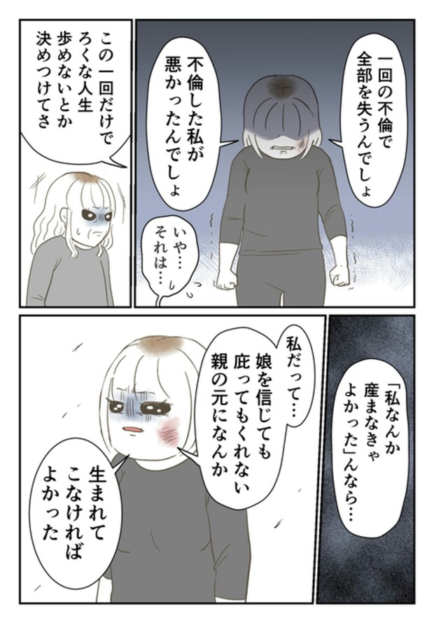 尾持さんの両親は、誤解していたことをあやまります。ですが、事情も聞かずに叩いた母親、責め立てた父親の行為を簡単にはゆるせません。