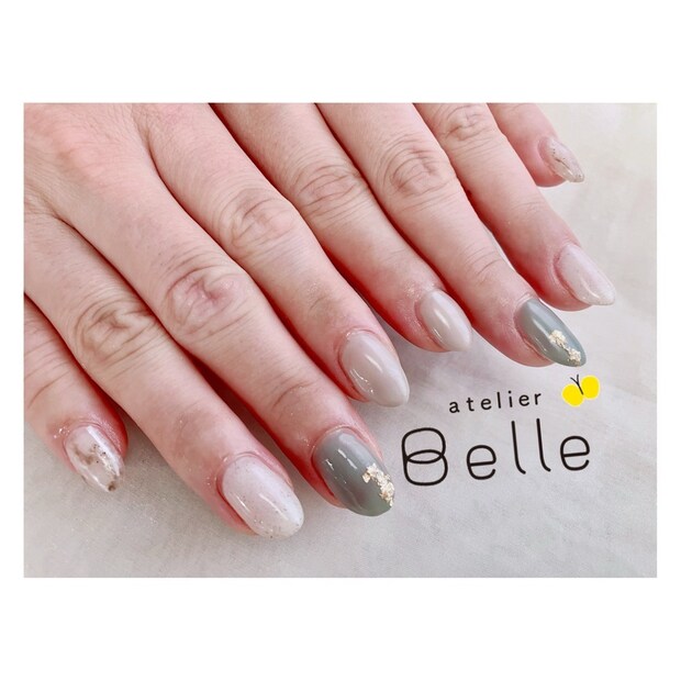 グレージュ、ホワイト、グリーンをベースに、ゴールドの箔や繊細なニュアンスを取り入れることで、