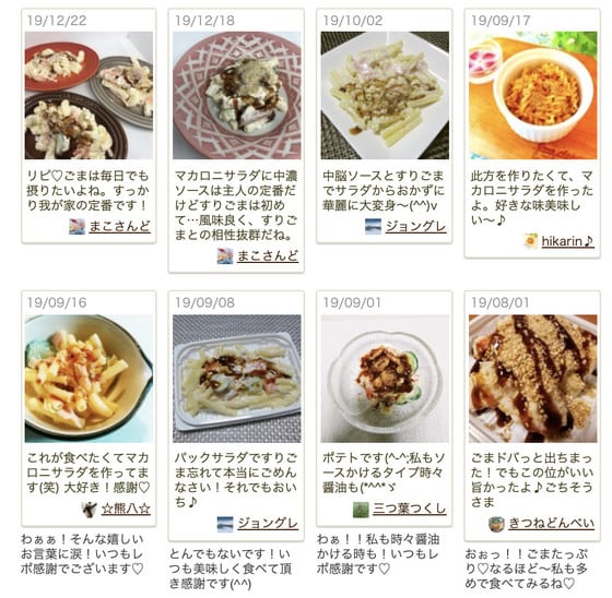 マカロニサラダにソースとごまをかけて食べるというもの。一見すると合わなそうな組み合わせですが、これがおいしいと好評なんです。つくれぽ(つくりましたフォトレポート) には、実際に「マヨソースのおいしい組み合わせに香ばしいすり胡麻がぐぅ」「円やかな味に変化して凄くおいしい」「いつもの味気ないマカロニがこんなにおいしくなるとは!」という声も。
