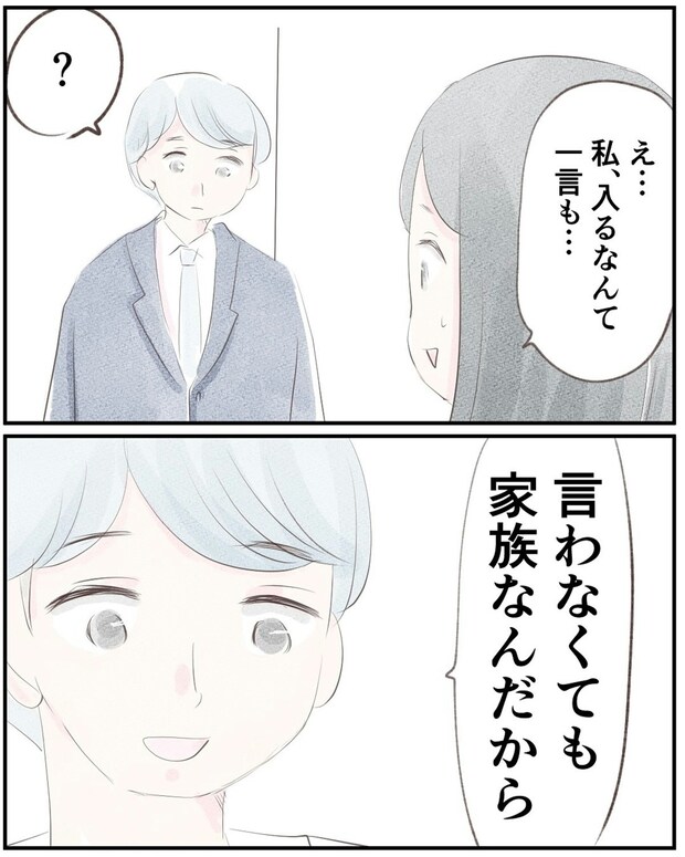 夫が知らないうちに娘を宗教に入信させていて戸惑うゆうさん。しかし、夫は結婚したときにゆうさんも入信させたと言います。「家族だから」と言う夫にゆうさんはそれ以上何も言わずに受け入れてしまいます。