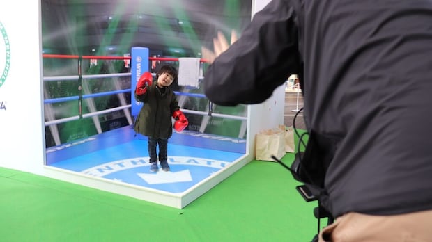 会場のメインとなるのは、子どもたちが憧れの世界に入り込める「なりきり撮影体験」。用意されたアイテムは、「バスケットボール(バスケ)」「ボクシンググローブ(ボクシング)」「ケーキ(おかしづくり)」「ギター(演奏)」「漫画用つけペン」の5つ。この中から自分が「やってみたい!」と思うものをひとつ選びます。