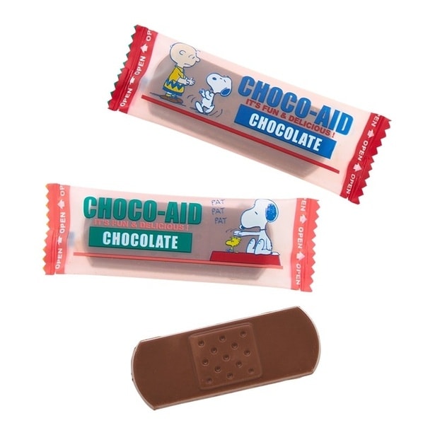 持ち歩きの救急ポーチとして使える「スヌーピー PEANUTS チョコエイド ポーチ カラビナ付き」(792円)はチョコが3つ入り。