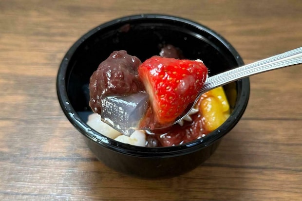 寒天の食感やもちもちの白玉風団子と共に、ジューシーな苺の甘酸っぱさと粒餡や黒蜜の上品な甘さが織りなす抜群のハーモニーを楽しめますよ♪