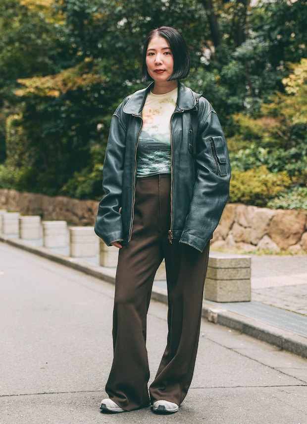ヴィンテージのメガネは、繊細なフレームとミニマムなデザインがこなれ感抜群! カジュアルな装いをぐっと引き締めてくれる。