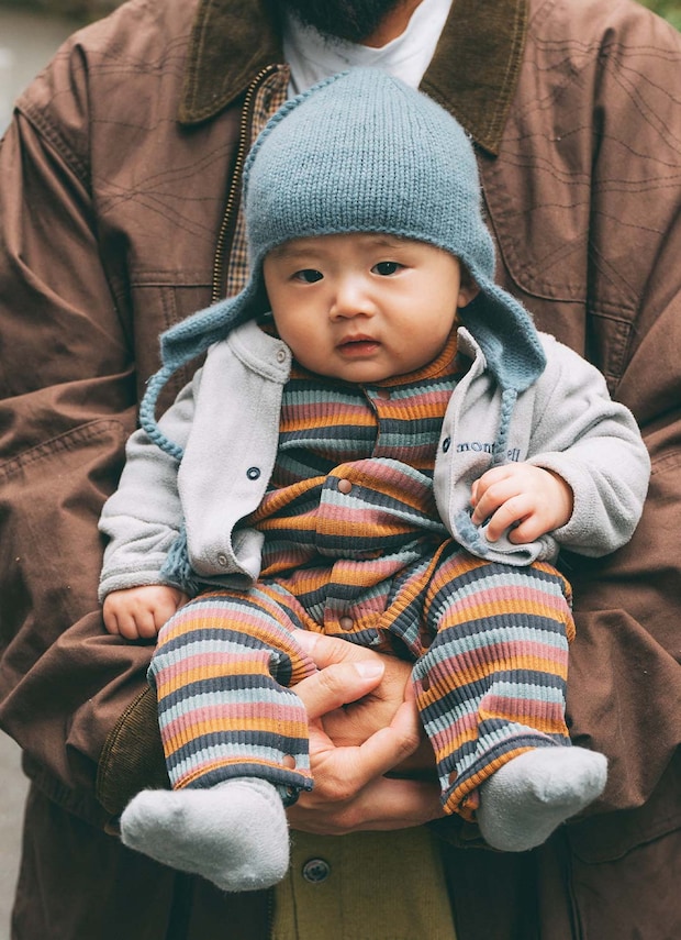 『アンドパル』のボーダーをお姉ちゃんと仲良しシェア! ほかはグレーでまとめて、ロンパースを引き立てたのがポイント。