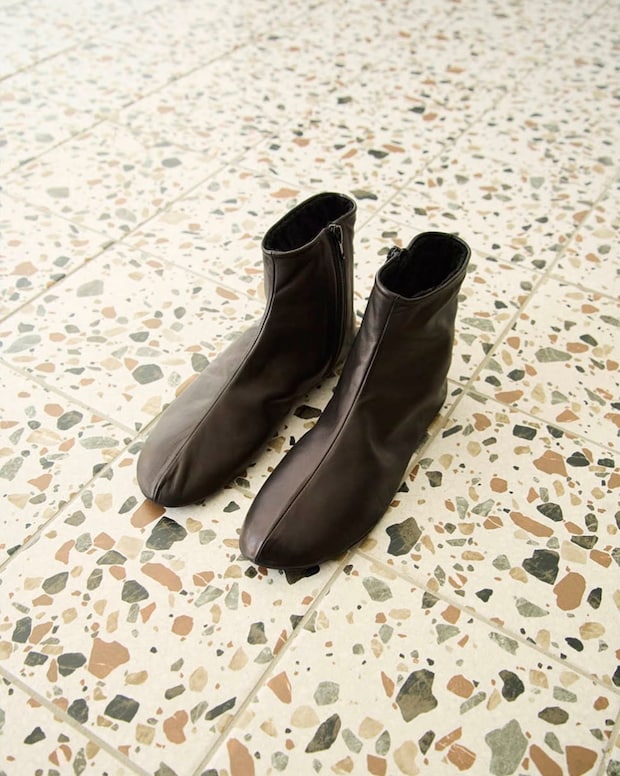 柔らかな極薄のスムースナッパレザー、一切無駄のないミニマルなデザインとは裏腹に、内側はふんわり暖かなムートン仕様のアンクルブーツ。この冬ヘビロテ確定!