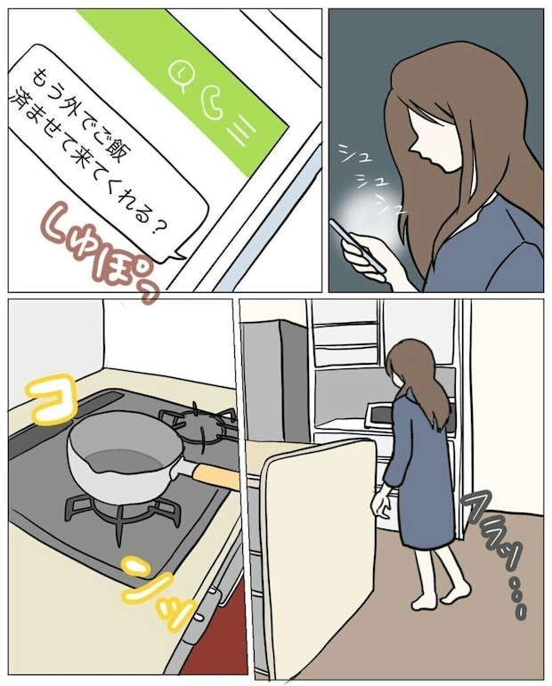 夫のためにと思って毎日料理をしてきたものの、毎日のように夫から飲み会の連絡がくることで、すっかり心が折れてしまった、たまままさん。料理にかけている時間や労力は誰のためなのか、何のためなのかわからなくなってしまいます。せっかく準備しても食べてくれない状態が続くと嫌になりますよね。