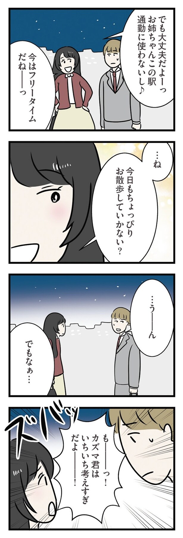前回、エリから忠告を受けたまりあ。後日、まりあとカズマはまた帰宅中にバッタリ会ってしまう。まりあから散歩に誘われたが、カズマは断った。しかし、強引なまりあによって結局散歩に行くことに…。