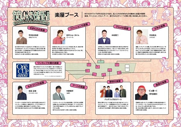 各芸人プロデュースによる“好き”をテーマにしたブース出展「笑いの楽屋」や、ステージコンテンツを予定している。イベントの詳細は、MIYASHITA PARK公式Instagramで随時発表される。