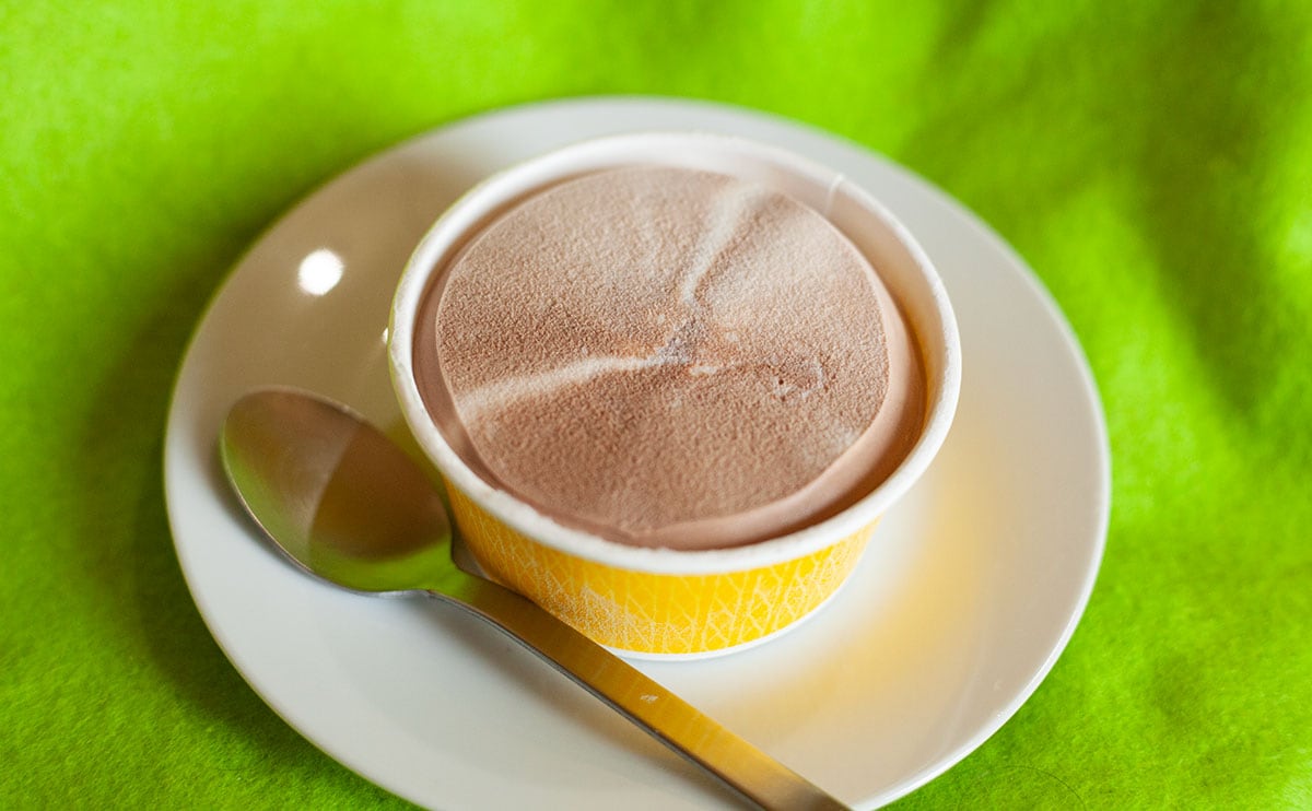 やわらかい色合いのとおり、味もやさしい。チョコががつんとくる感じではなく、かなりミルキーです。そこにコクのあるミルクアイスクリームが加わるわけですが、“どちらか”ではなく両方のおいしさがバランスよく味わえて、チョコ&ミルクの相性のよさをあらためて感じますね。というか、ミルクアイスクリームのおいしさは、「さすが」の一言!