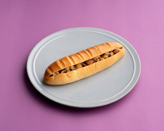 ブリオッシュ生地に、カカオ分58%のクーベルチュールチョコを使った自家製チョコカスタードを絞り、燻製ナッツの香ばしさをプラスしたひと品。アーモンド・カシューナッツ・クルミ・マカダミアナッツの4種を使用し、香り高く奥行きのある味わいに仕上げています。