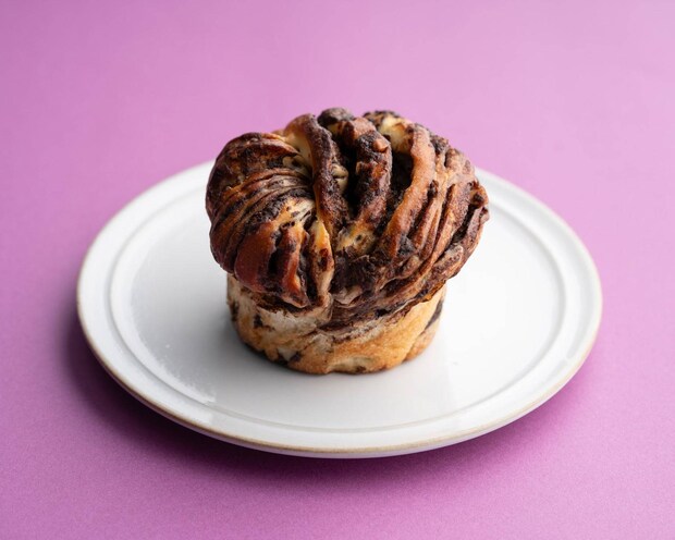 東ヨーロッパ発祥の菓子パン「バブカ」を、成城石井流にアレンジ。卵とバターを使ったリッチな生地に、自家製チョコフィリングとカカオ分58%のクーベルチュールチョコ、さらにカシューナッツを巻き込んで焼き上げました。