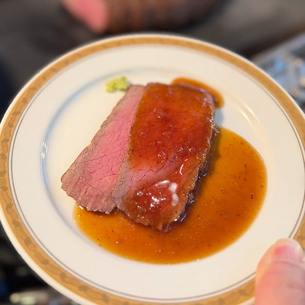 「ホテル伝統じっくり低温で焼き上げるローストビーフ」。お肉はしっとり柔らかく、旨みがジュワッと広がっていきます。ケーキなど、甘いものの合間にいただくのにぴったりですね。