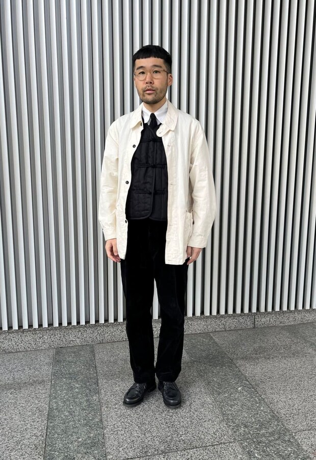 その悩みを自他ともに認めるファッション好きで、レイヤードの名手でもあるコミュニケーションプランナー安武俊宏さんに相談してみました。そしたら「ベストを取り入れるのがオススメです」との返答が。さらに「ベストといってもさまざまな素材がありますが、レイヤードで使いやすいのはキルティングです。じつは最近、無印良品の展示会で理想的なベストを見つけたんです」