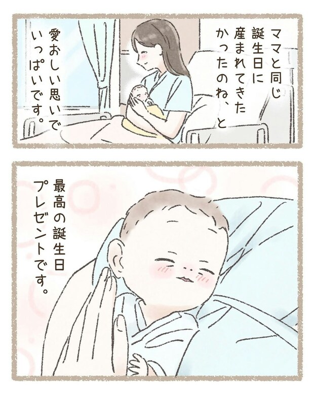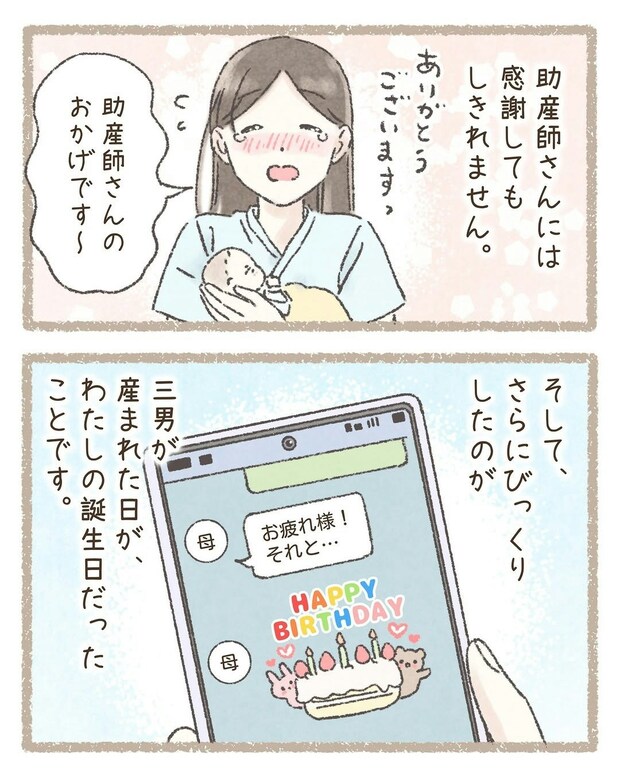 アドバイスをくれた助産師さんには、感謝の気持ちでいっぱいだったそうです。そして不思議なことに、赤ちゃんが生まれた日は、わこさんの誕生日でした。まるでこの日を選んで生まれてきたかのように感じられますね。