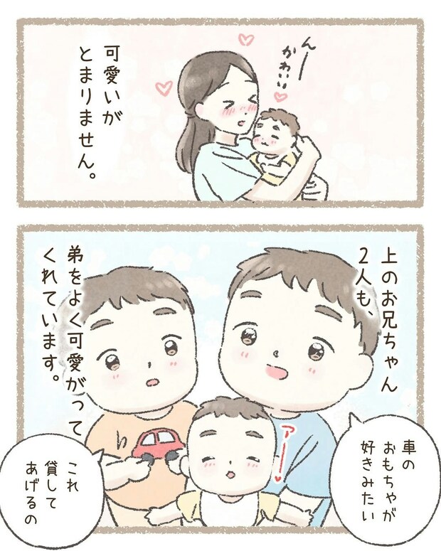 2人のお兄ちゃんたちも、三男くんがかわいくて仕方がない様子です。