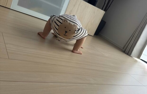 「かわいすぎる」1歳の息子の最近のマイブーム“くまケツポーズ”