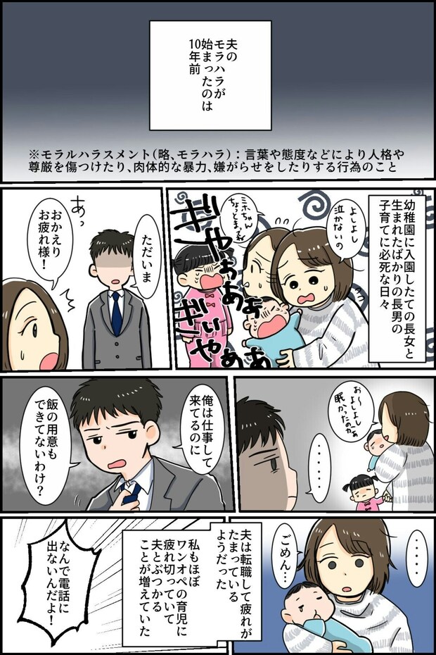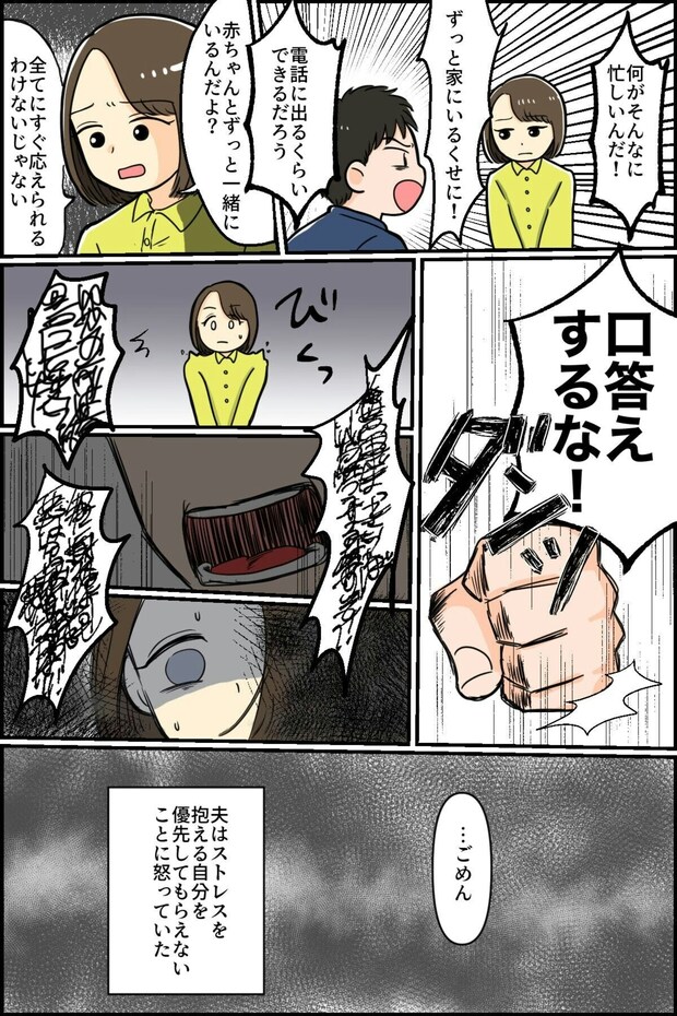夫は仕事のストレスを主人公にぶつけるようになります。まるで自分のしていることがすべて間違っていて、自分が悪いと思い込んでしまうような、日常的な夫からの暴言が続きます。