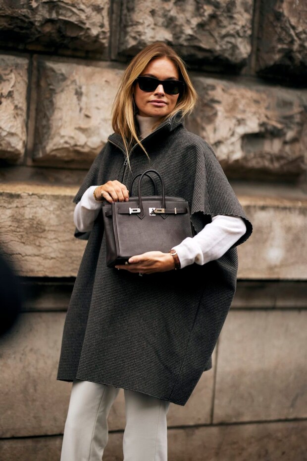 永遠の定番、エルメスのバーキンも、そっと小脇に抱えられているところをキャッチ!
