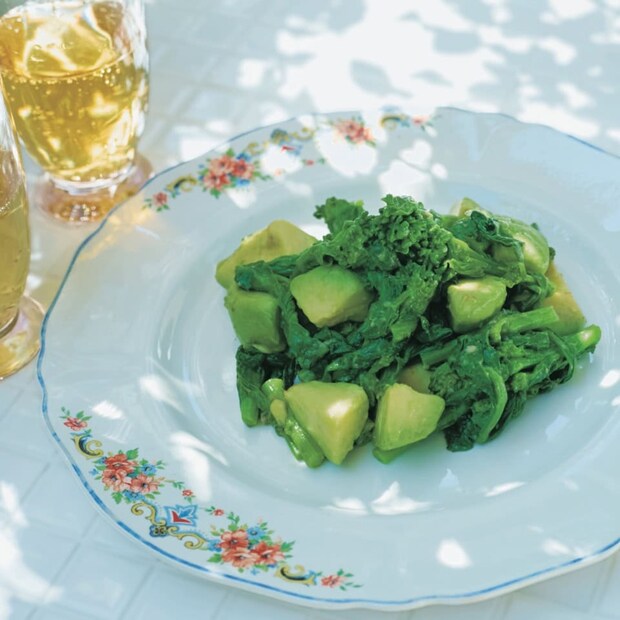 リピート間違いなし! ほろ苦い菜の花×濃厚なアボカドに、アンチョビで作った旨みの強いドレッシングが絶妙に合う。